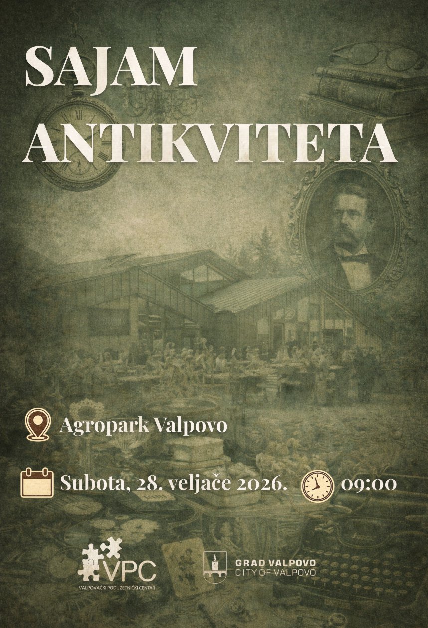 Valpovački poduzetnički centar tradicionalno krajem mjeseca organizira sajam antikviteta. Sajam će se održati u subotu, 28. veljače 2026. na tržnici Agropark s početkom u 09:00 sati.